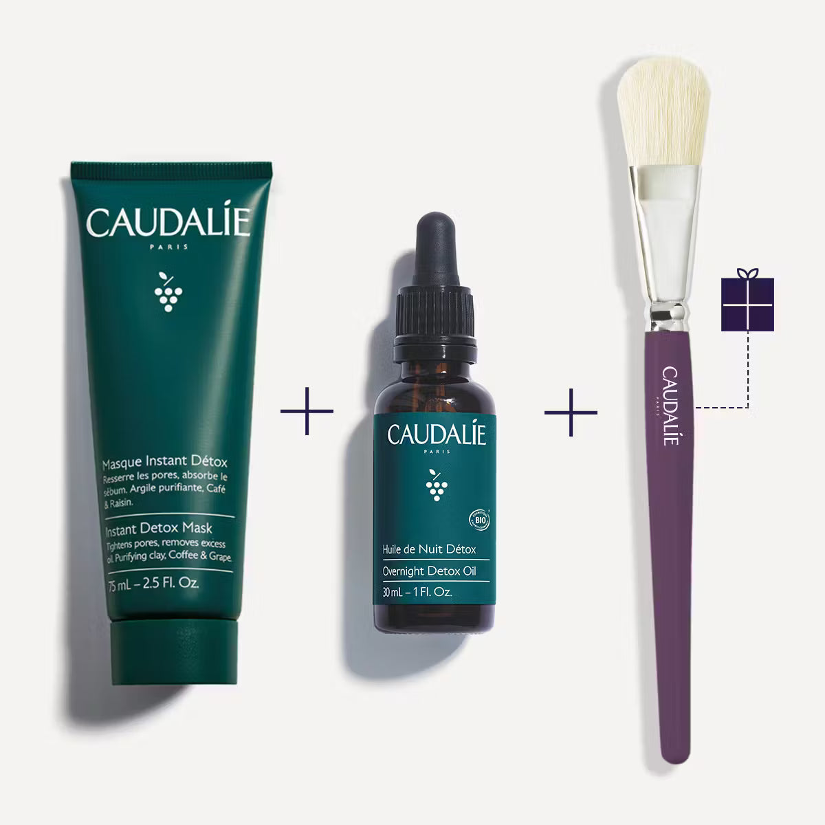 Craquez pour notre Duo Mixologie Détox ! Dans ce pack, retrouvez votre Masque Instant Détox Vinergetic C+ préféré ainsi que l'huile de Nuit Détox Vinergetic C+ pour un teint frais après application. Profitez-en notre Pinceau Masque Visage est OFFERT !